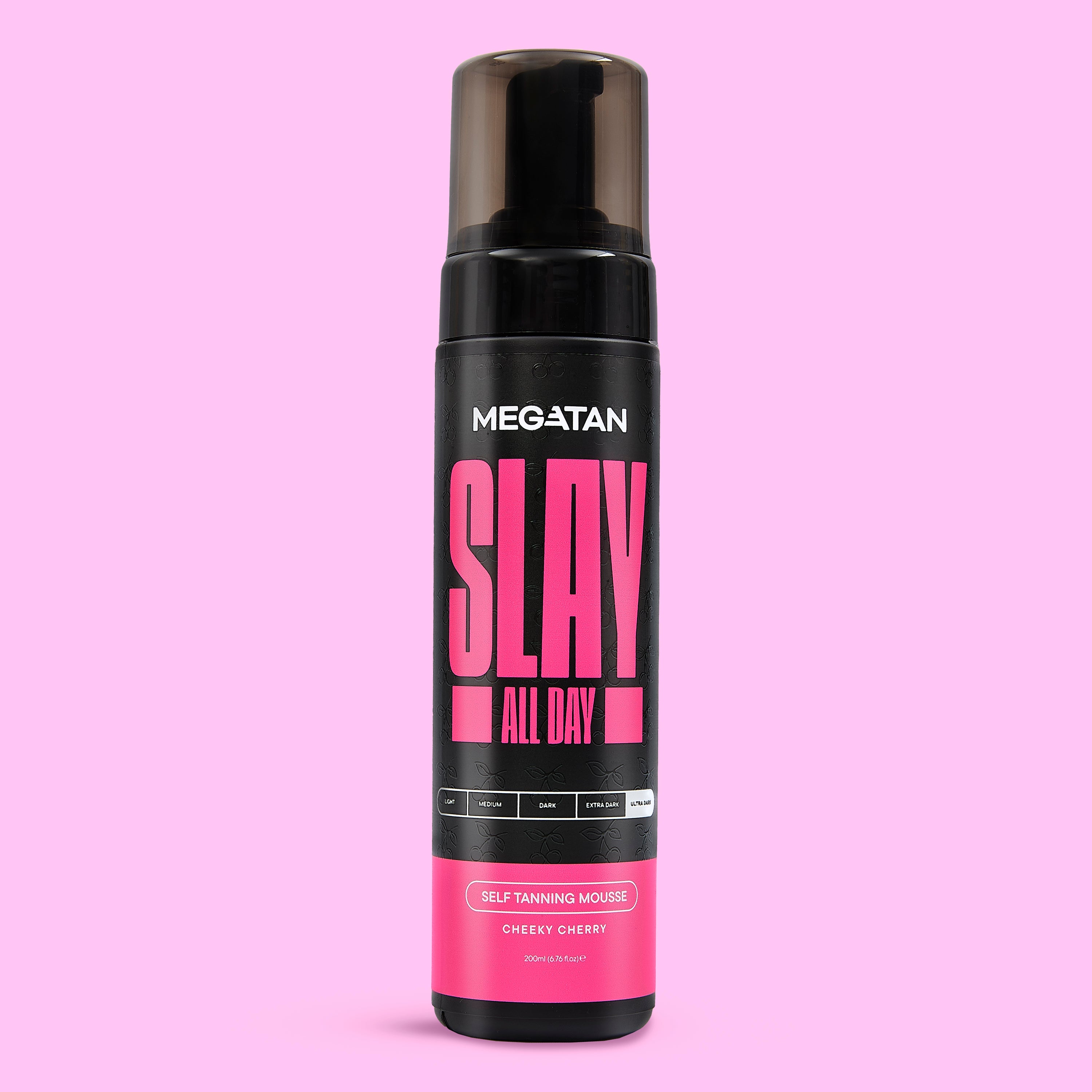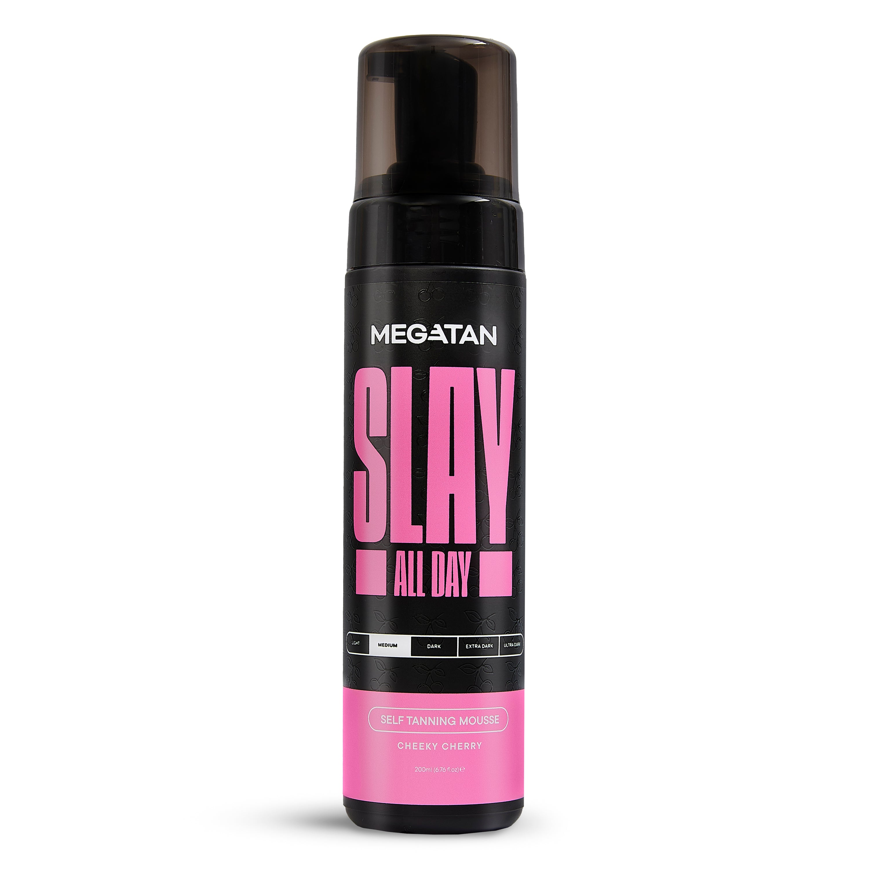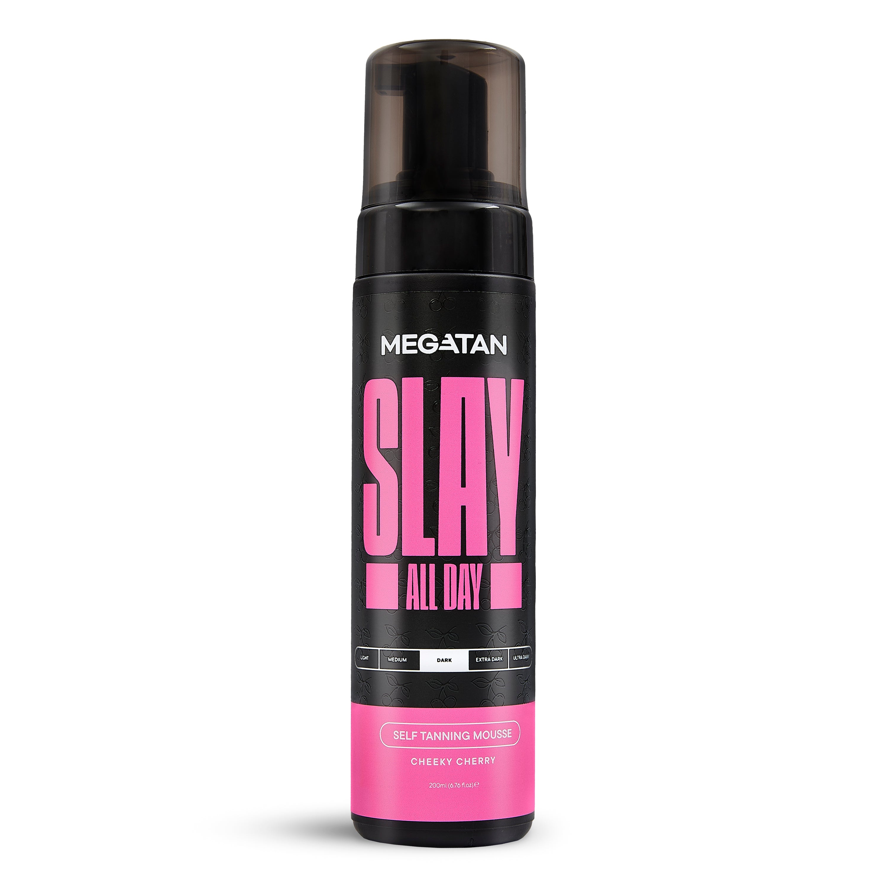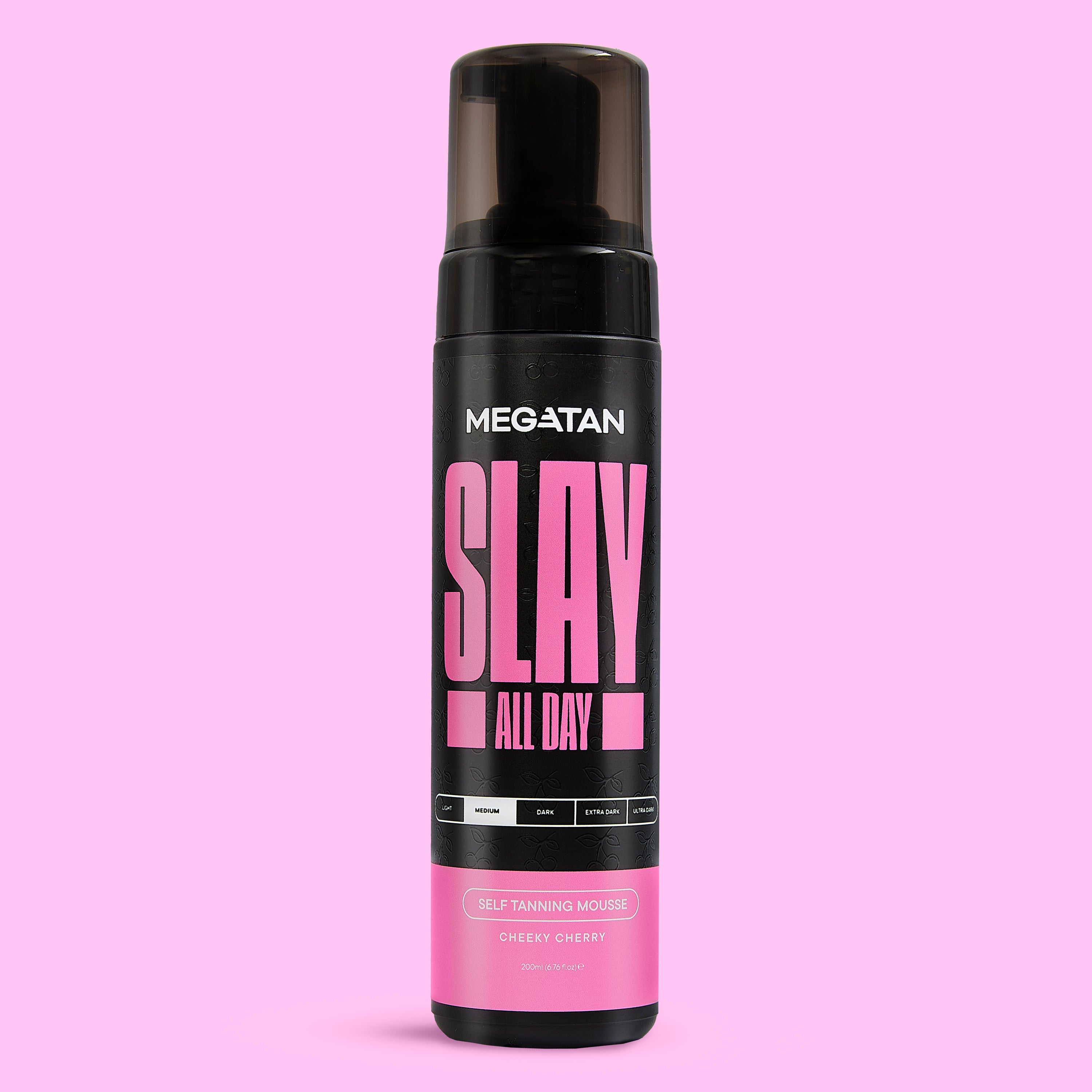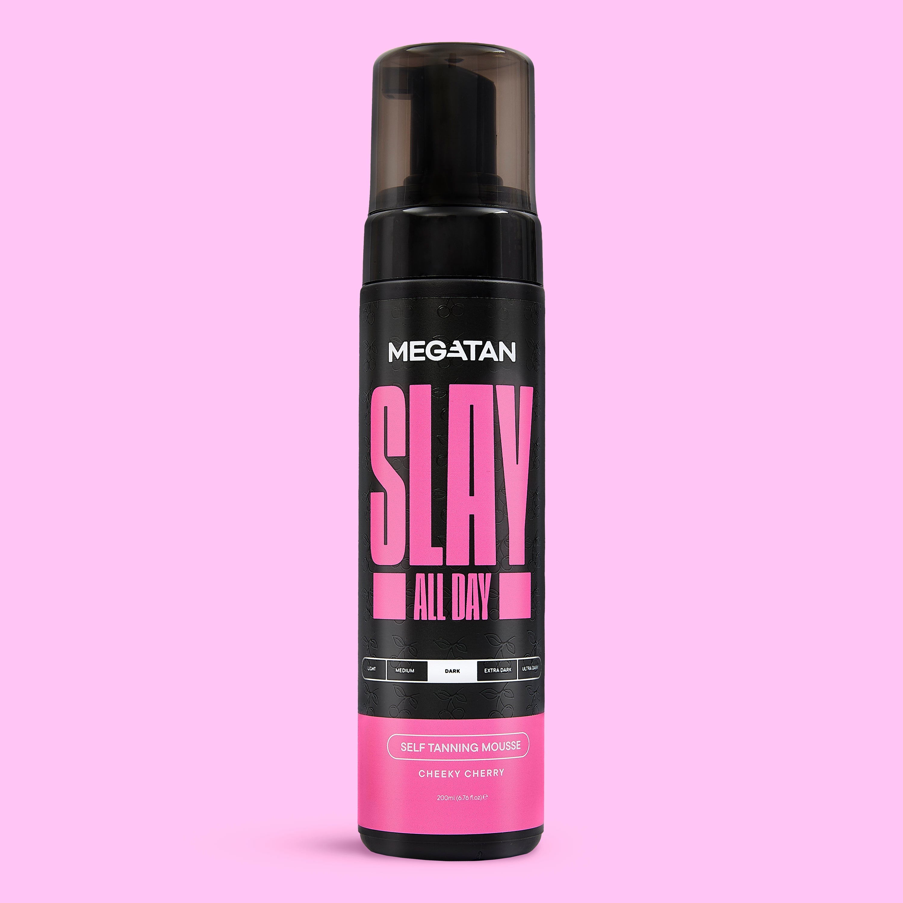 Choose your shade—Medium, Dark, or Ultra Dark—and apply Slay All Day Cheeky Cherry Self Tanning Mousse [Red Based] as part of your tanning routine to achieve a natural bronze glow. The product is cherry-scented, hydrating, and streak-free for a reliable result.